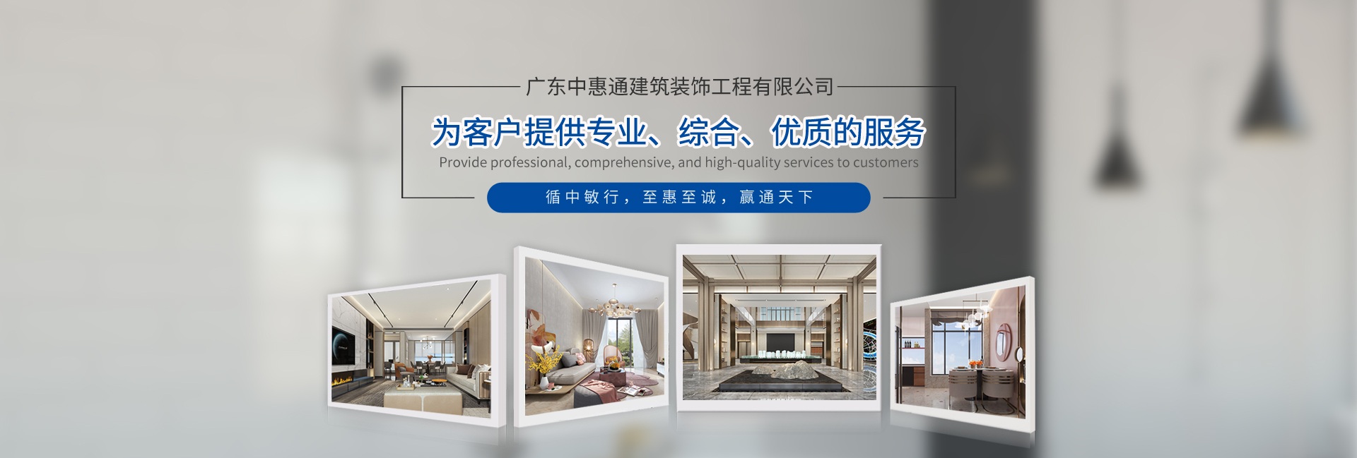 广东中惠通建筑装饰工程有限公司成立于2016年,注册资金8000万元,是国家建筑装修装饰工程专业承包壹级、建筑幕墙工程专业承包贰级、电子与智能化工程专业承包贰级、建筑消防设施工程专业承包贰级、建筑机电安装工程专业承包叁级、建筑工程施工总承包叁级、工程设计丙级资质企业。公司从事商业地产、宾馆酒店、工厂厂房、写字楼、别墅、商场、娱乐城等各类场所室内外装饰工程,智能化、园林绿化的设计与施工以及消防、空调安装。中惠通锐意进取、不懈努力、不断探索和总结,现在当地行业中已暂露头角,建立了一套完善的咨询服务、工程设计、安装施工、工程预结算等一体化服务的管理体系,为客户提供专业、综合、优质的服务,取得良好企业效益和社会效益。